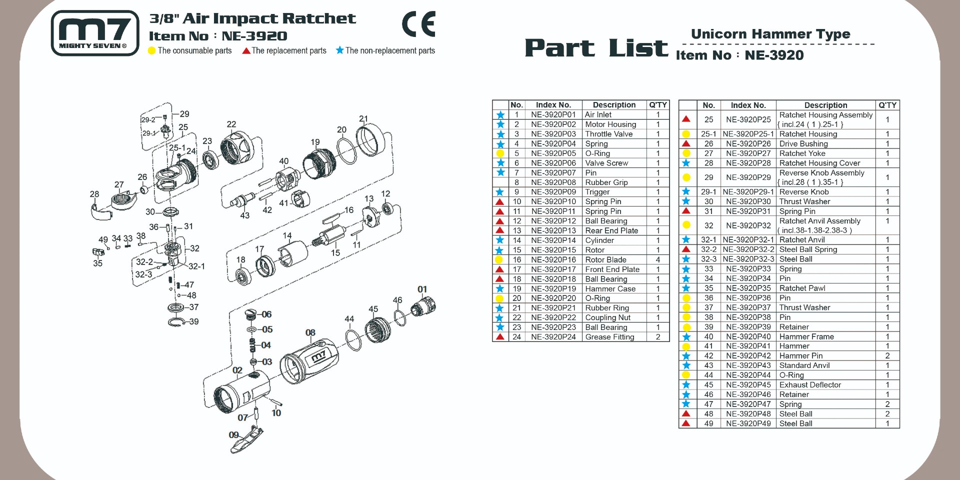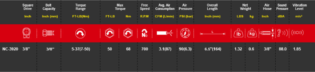 Llave de impacto neumático con mando de 3/8¨