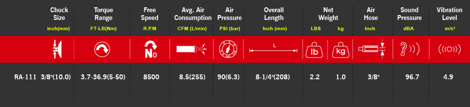 Capacidad del tornillo: M8 Entradade aire: 1/4″