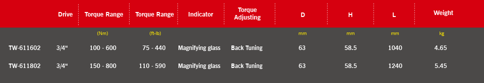 Llave dinamométrica de 3/4″, Visualización en ventana. Escala Nm / ft-lb, Back Tuning
